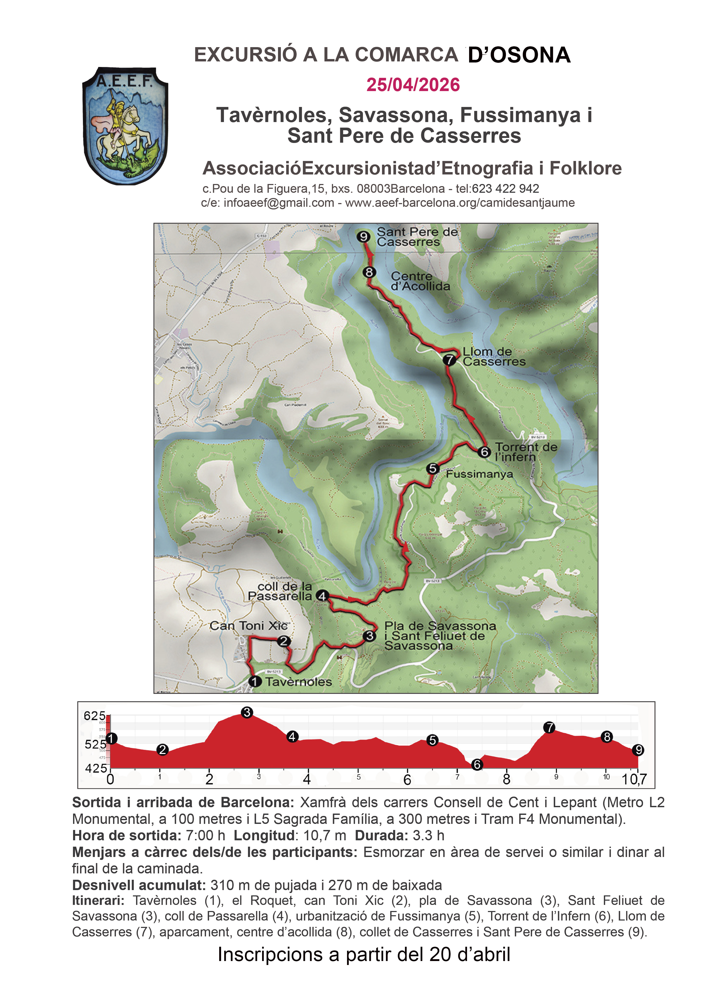25 d'abril.- Tavèrnoles, Sabassona, Fussimanya i Sant Pere de Casserres (INFO al final d'aquest document)