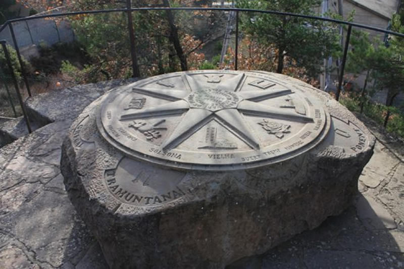 La senyalització consisteix en un edicle que serveix de mirador i que té, a dalt, una rosa dels vents tallada en un bloc de pedra. Aquesta rosa dels vents està il·lustrada amb diversos símbols de Catalunya. Va ser esculpida l'any 1993.